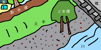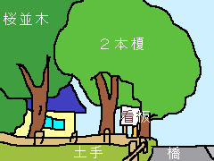 結構幅のある川の直ぐ側に立つ2本の細い榎の木でした。