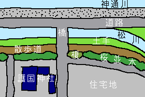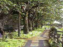神社の裏には松川に沿って土手と桜並木が続いていました。