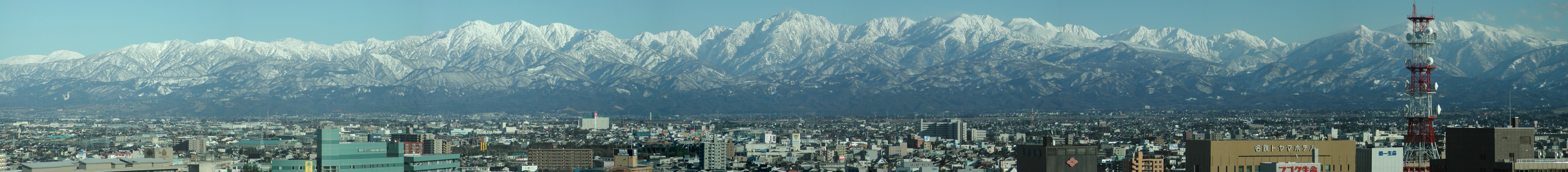 何方が撮られた写真か忘れちゃいましたが^^; とても気に入ってる写真です。 富山市から見た「立山連峰」なのですが、 ほぼ全体を写真に収められてるんですよね。 晴れた日はこんな素晴らしい景色が、 何処に居ても大体は見られます。 そんな富山に生まれ育って、 とても誇らしい気持ちになります。