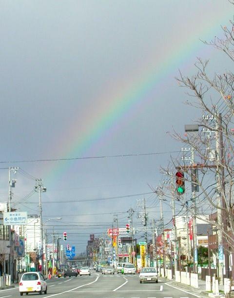 写真その3 富山市中島付近からの「虹」の写真です。 まぁ、これも、俺の撮った写真ではないですけど・・・ 因みに、このまま真っ直ぐに進むと、 約10分で海に出ます。 美奈子と一緒に虹を見たいなぁ・・・。 photo by osamu_kondo 写真TOPへ戻る